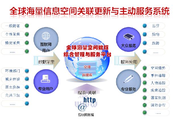 “全球海量空间信息更新关联与主动服务系统”项目拟构建我国第一个全球覆盖、高分辨率、多主题、面向全球化的空间信息服务海量动态融合分析与决策仿真系统。